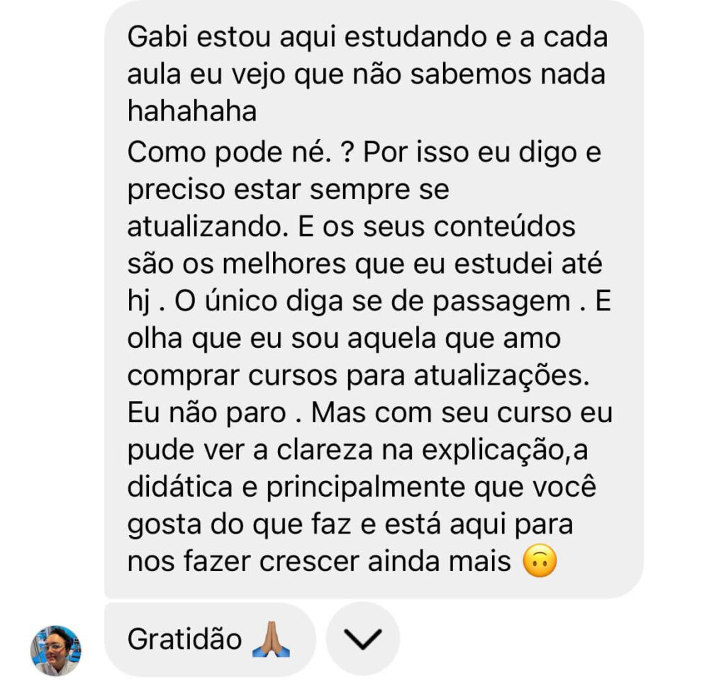 Gabriela forma instrutores de Pilates de alto nível, capacitando-os a alcançar reconhecimento profissional e sucesso financeiro.